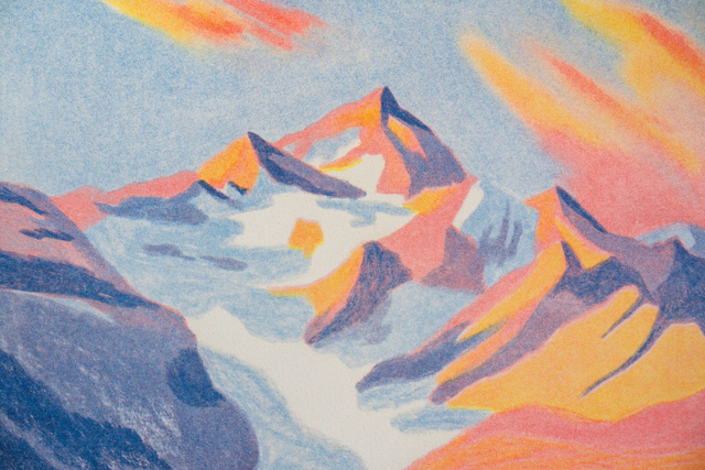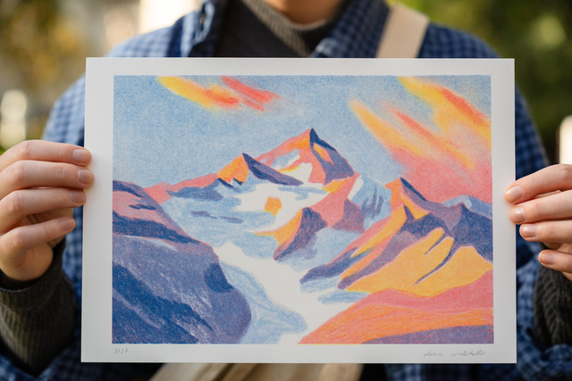 The unique riso printing process gives this piece its own character, with subtle variations in texture and color that make each print truly one of a kind.